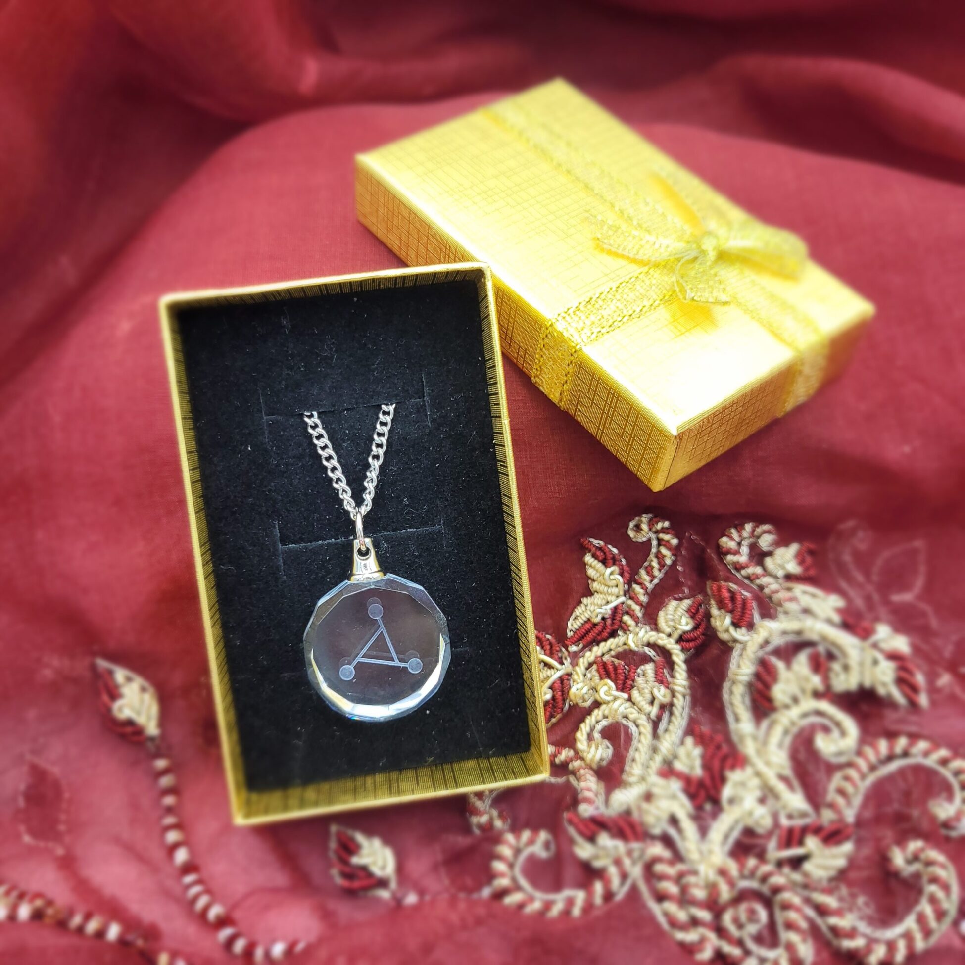 In diesem Borosilikatglas – Anhänger ist das Schutzsymbol eingraviert, welches ich von der geistigen Welt erhalten habe.